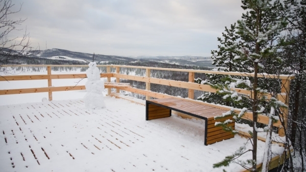 Летом посетители смогут гулять по деревянному настилу экологической тропы. На территории оборудуют информационные стенды, скамейки и смотровую площадку.
