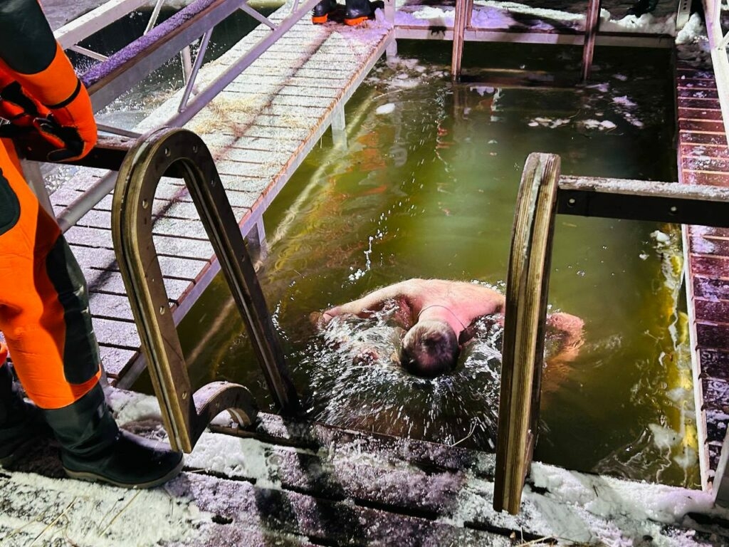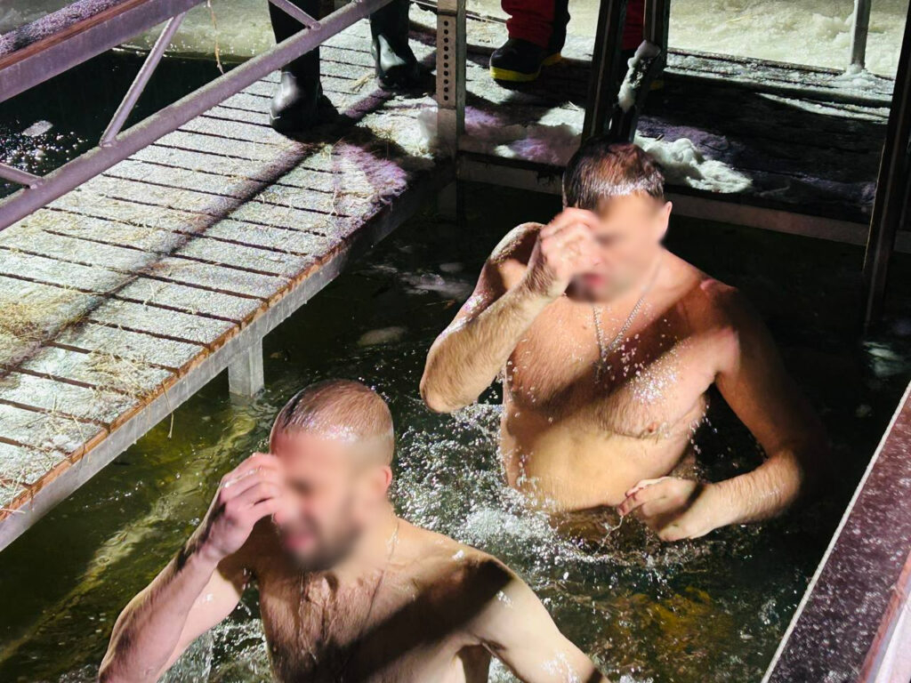 Перед началом купаний священник прочитал молитву у купели и совершил чин освящения воды. После этого началось главное — люди по очереди подходили к иордани и трижды окунались в ледяную воду. Многие при этом крестились и читали молитвы, соблюдая традиции праздника Крещения Господня.