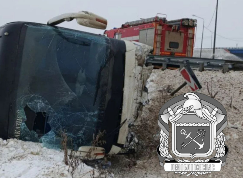 Автобус перевернулся с пассажирами на трассе в Кингисеппском районе