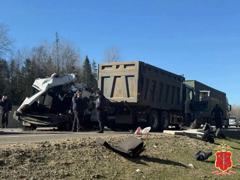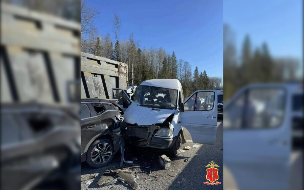 На трассе в Тосненском районе произошла масштабная авария с участием двух грузовиков, двух легковушек и микроавтобуса. В результате случившегося пострадали 13 человек.